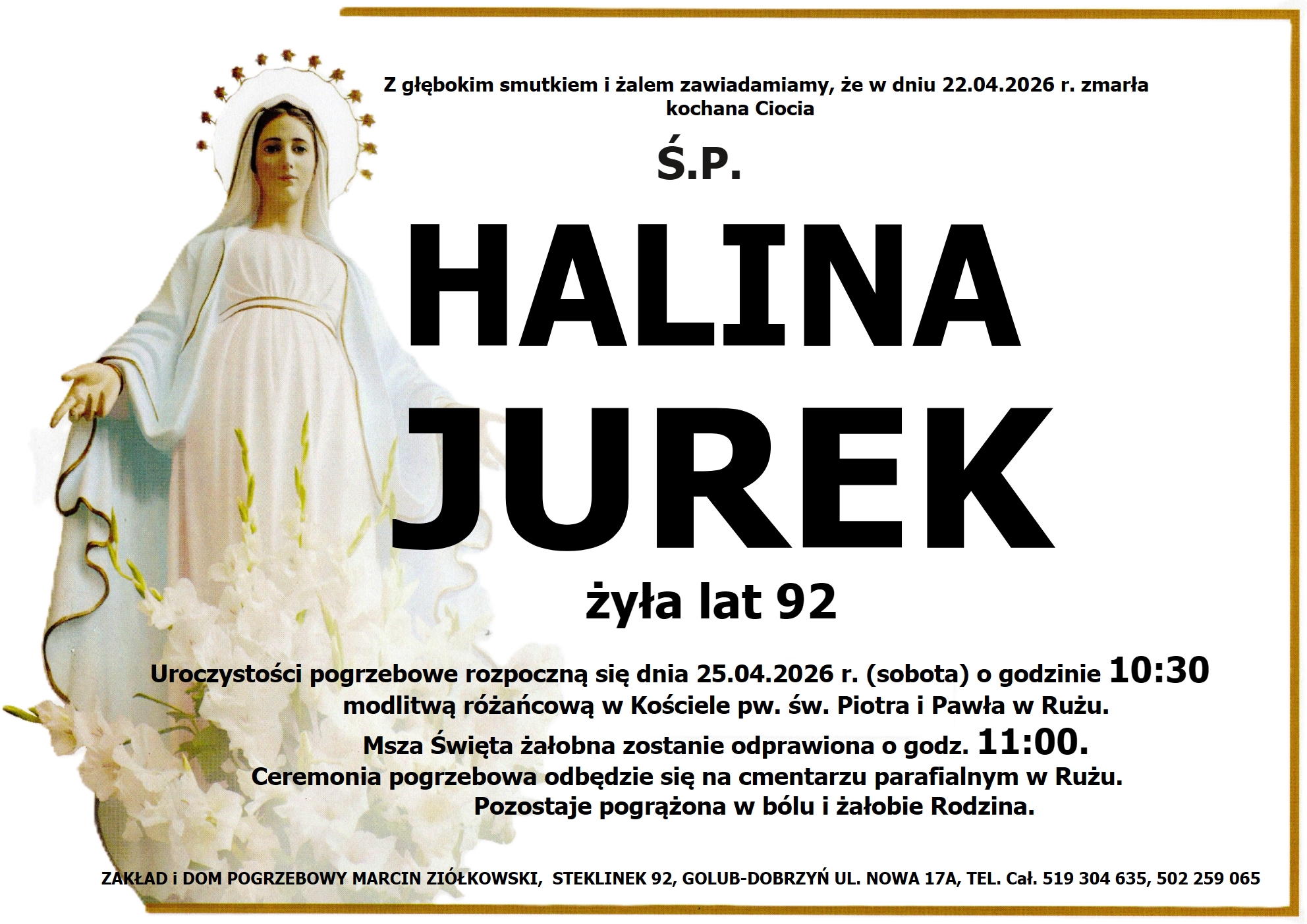 Ceremonia pożegnalna: 25.04.2026 o godz. 10:30 w Kościele pw. św. Piotra i Pawła w Rużu