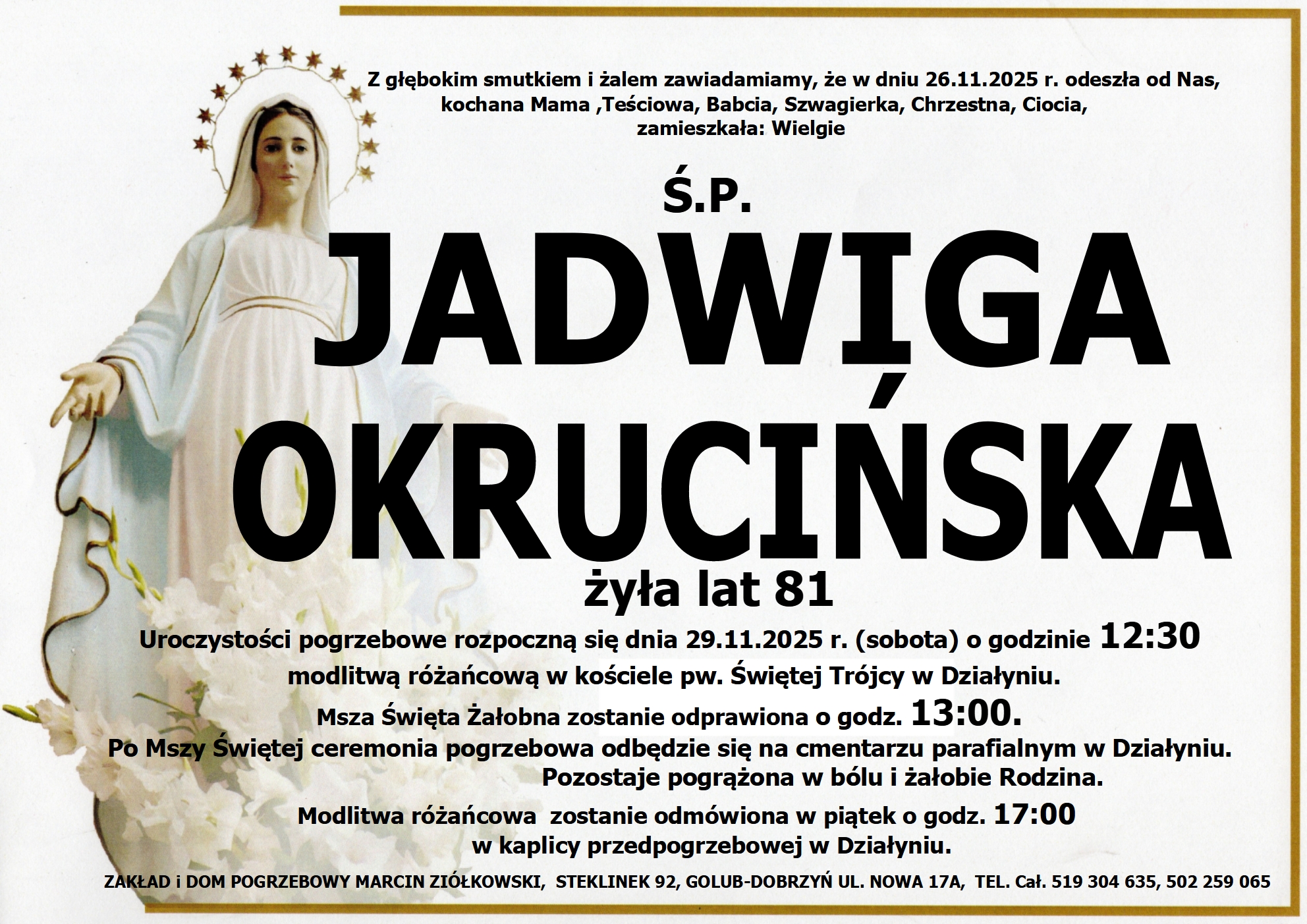 w kaplicy przedpogrzebowej w Działyniu.