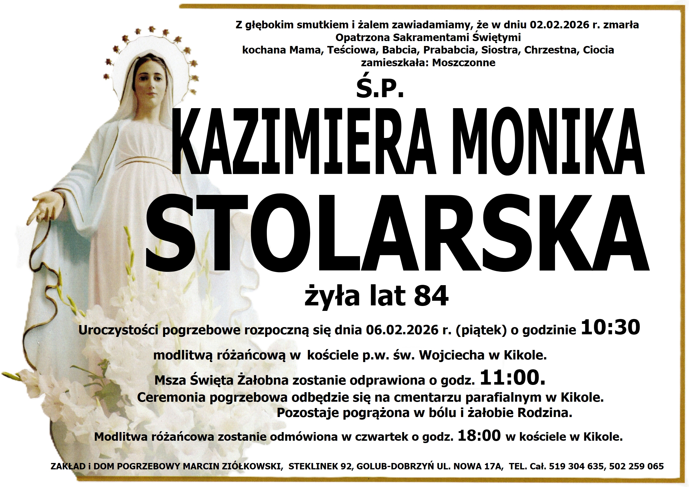 Nekrolog KAZIMIERA MONIKA STOLARSKA