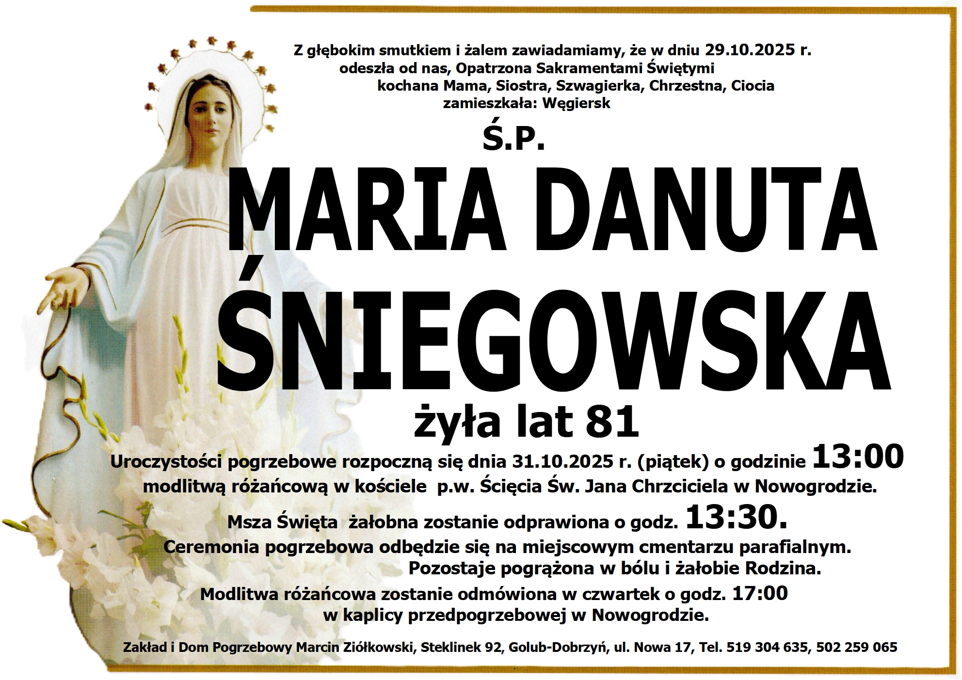 Nekrolog MARIA DANUTA ŚNIEGOWSKA