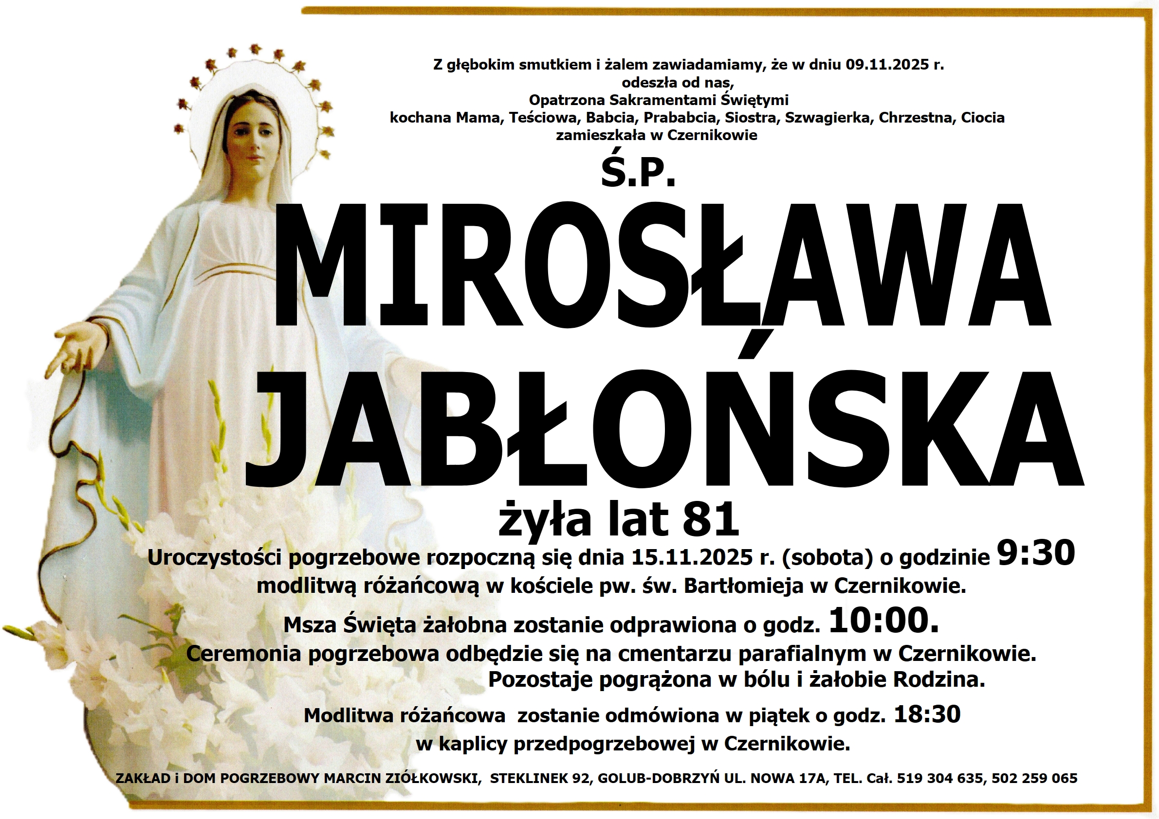 w kaplicy przedpogrzebowej w Czernikowie.