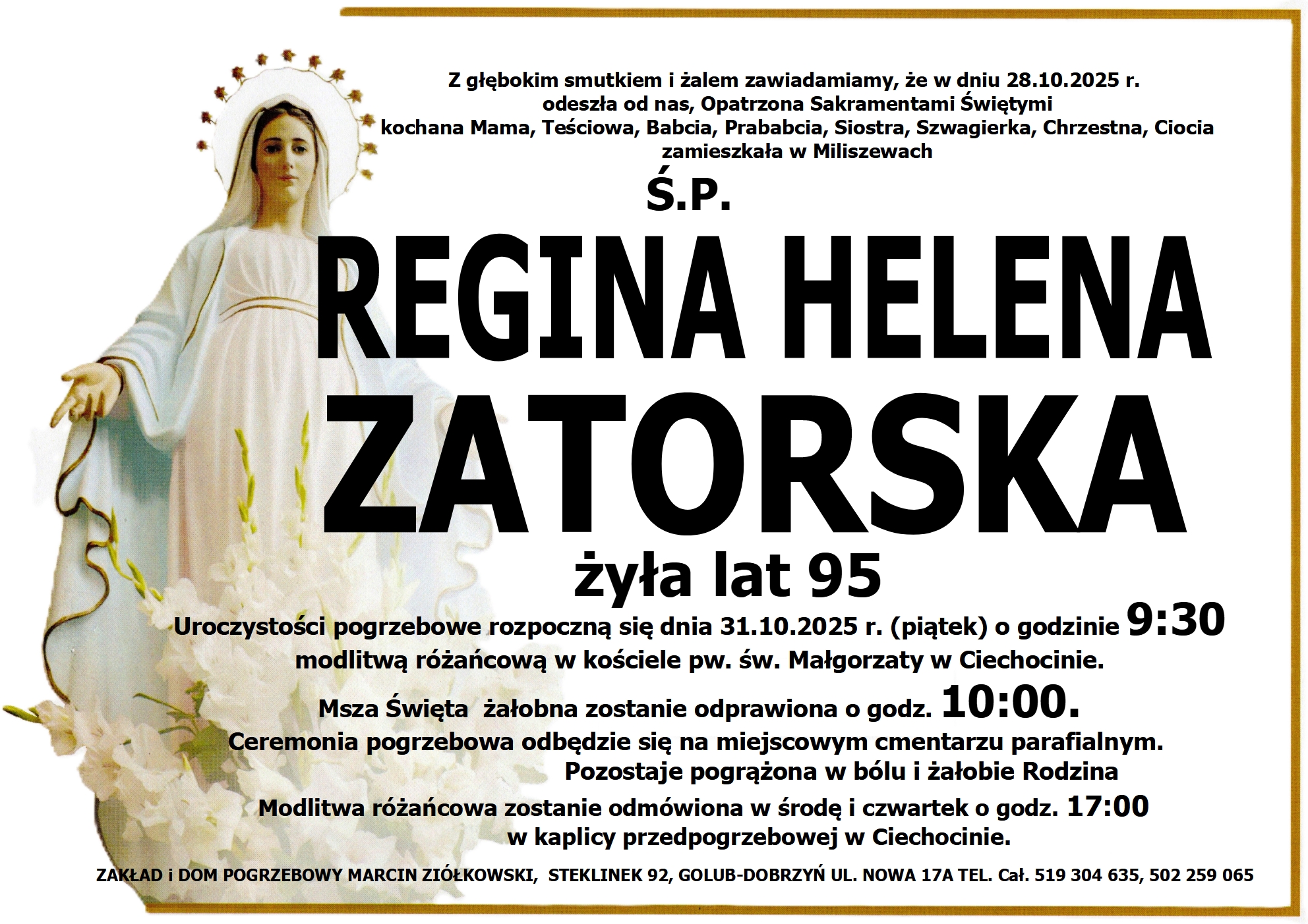 Ceremonia pożegnalna: 31.10.2025 o godz. 09:30 kościół p.w. Św. Małgorzaty w Ciechocinie